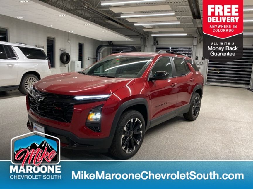 2026 Chevrolet Equinox RS AWD 8-Speed Automatic 1.5L DOHC Radiant Red Tintcoat Recent Arrival! 2-Way Power Driver Lumbar Control Seat Adjuster, AM/FM radio: SiriusXM, Auto High-beam Headlights, Convenience Package III, Driver 8-Way Power Seat Adjuster, Front Fog Lamps, Front Passenger 2-Way Power Lumbar Seat Adjuster, Front Passenger 8-Way Power Seat Adjuster, HD Surround Vision, Heated Driver & Front Passenger Seats, Heated Rear Outboard Seating Positions, Heated steering wheel, Memory Settings, Navigation System, Power Dual Glass Panoramic Sliding Sunroof, Power Liftgate, Preferred Equipment Group 2RS, Premium audio system: Chevrolet Infotainment 3, Radio: 11.3″ Diagonal Advanced Color LCD Display, Rain sensing wipers, Rear Pedestrian Alert, Remote keyless entry, Safety & Technology Package, SiriusXM w/360L Trial Subscription, Steering wheel mounted audio controls, Telescoping steering wheel, Tilt steering wheel, Traffic Sign Recognition, Ventilated Driver Seat, Ventilated Front Passenger Seat. Our dealerships sell more Chevrolets than any single dealership in the state. We have the largest Chevy inventory of Equinox and highest customer satisfaction. At Mike Maroone, if you don’t like it … Bring it back! For more information or vehicles like it, stop by Mike Maroone South today. We are just south of the Citadel Mall on the corner of Academy and Bijou. Proudly serving all of Colorado and New Mexico, including the Front Range, Denver, Pueblo, Fort Collins, Canon City, Santa Fe, & Albuquerque.