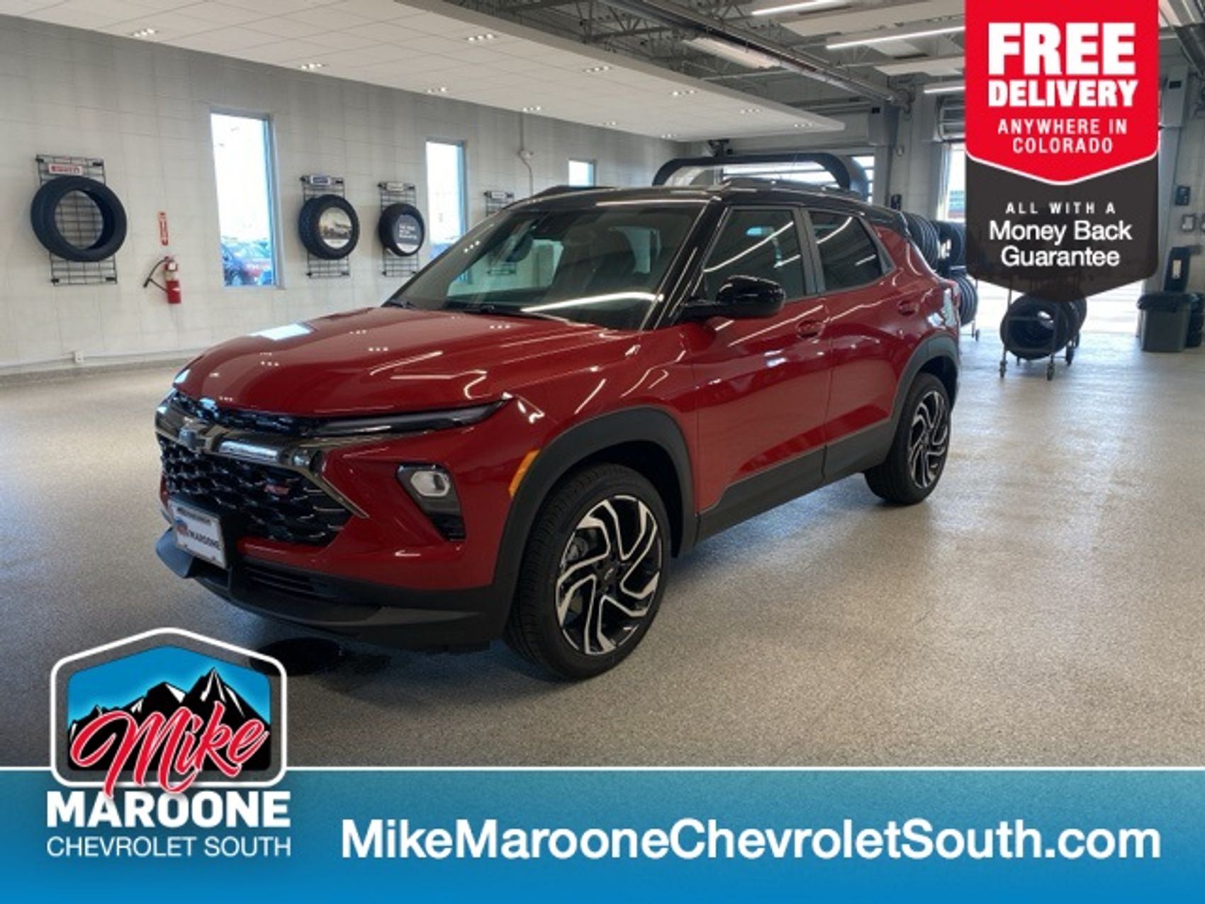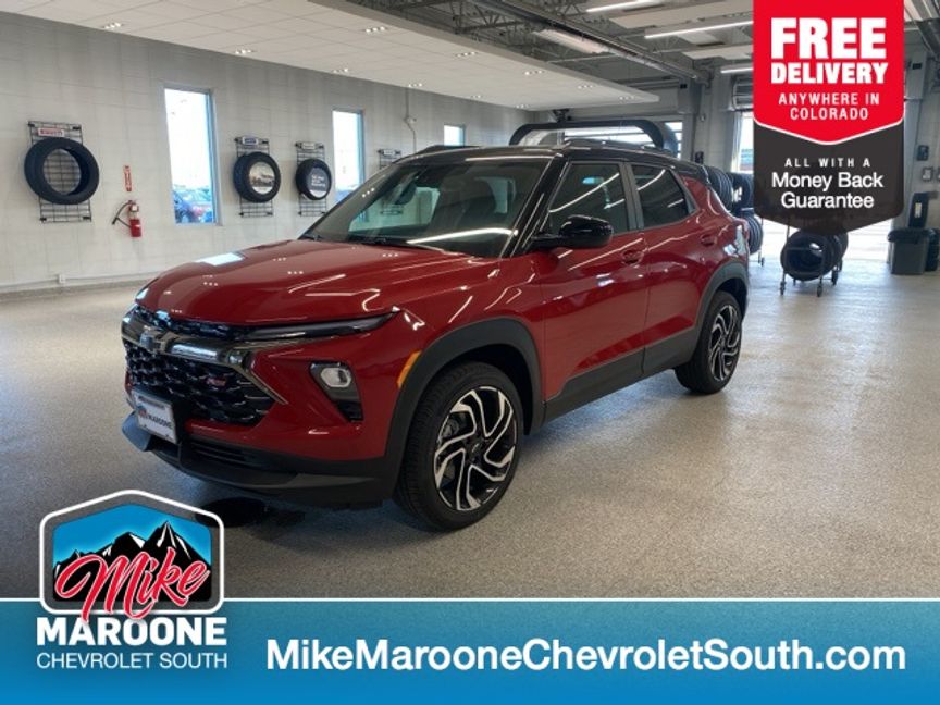 2026 Chevrolet TrailBlazer RS AWD 9-Speed Automatic 1.3L Ecotec Turbo DOHC SIDI w/VVT Apex Red Recent Arrival! 1 Type-A & 1 Type-C USB Charging-Only Ports, 1 Type-A & 1 Type-C USB Ports, 120-Volt Power Outlet, 4-Way Manual Front Passenger Seat Adjuster, 6-Speaker Audio System Feature w/Amplifier, 8-Way Power Driver Seat Adjuster, Adaptive Cruise & Sound Package, Adaptive Cruise Control, All-Weather Floor Mats, Auto High-beam Headlights, Bose Premium 7-Speaker Audio System Feature, Cabin Humidity Sensor, Convenience Package, Dr & Fr Passenger Illuminated Vanity Mirrors, Driver Confidence Package, Dual-Pane Panoramic Power Sunroof, Flat-Folding Front Passenger Seatback, Fully automatic headlights, Hands Free Power Programmable Liftgate, Heated door mirrors, Heated Driver & Front Passenger Seats, Inside Rear-View Auto-Dimming Mirror, Lane Change Alert w/Side Blind Zone Alert, Mosaic Black Metallic Two-Tone Roof, Power door mirrors, Preferred Equipment Group 1RS, Radio: AM/FM Stereo Audio System, Rear Cross Traffic Alert, Rear Park Assist, Remote keyless entry, Single-Zone Automatic Climate Control, SiriusXM Trial Subscription, Telescoping steering wheel, Tilt steering wheel, Variably intermittent wipers, Wireless Apple CarPlay/Android Auto, Wireless Charging. Our dealerships sell more Chevrolets than any single dealership in the state. We have the largest Chevy inventory of TrailBlazer and highest customer satisfaction. At Mike Maroone, if you don’t like it … Bring it back! For more information or vehicles like it, stop by Mike Maroone South today. We are just south of the Citadel Mall on the corner of Academy and Bijou. Proudly serving all of Colorado and New Mexico, including the Front Range, Denver, Pueblo, Fort Collins, Canon City, Santa Fe, & Albuquerque.