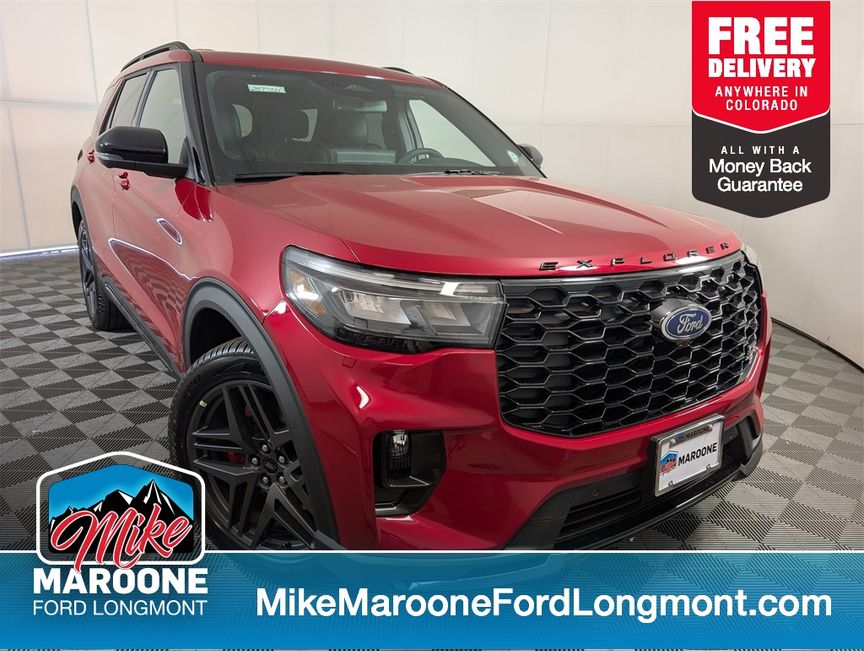 Rapid Red Metallic Tinted Clearcoat 2025 Ford Explorer 3.0L EcoBoost V6 ST 4D Sport Utility Price includes: $1000 – Final Days Mega Bonus Cash. Exp. 01/02/2026 $1500 – Bonus Customer Cash. Exp. 01/05/2026