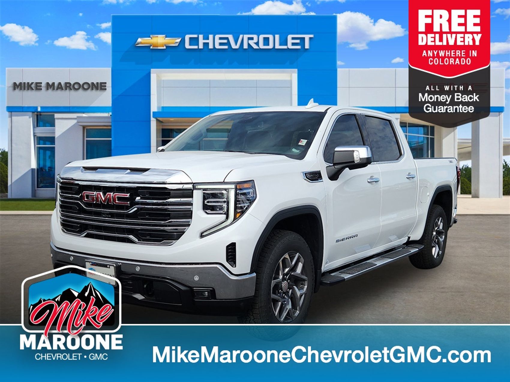 Summit White 2026 GMC Sierra 1500 SLT 4WD 10-Speed Automatic EcoTec3 5.3L V8 10-Speed Automatic, 4WD, Black Leather.Proudly serving Longmont, Boulder, Denver, Loveland, Erie, Fort Collins, Thornton, Westminster, Lakewood, Broomfield, Golden, Brighton, and Greeley. Price includes: $1500 – Buick & GMC Consumer Cash Program. Exp. 01/02/2026 $1500 – GM Bonus Cash. Exp. 01/02/2026 $250 – December Buick GMC Holiday Event Bonus Cash. Exp. 01/02/2026