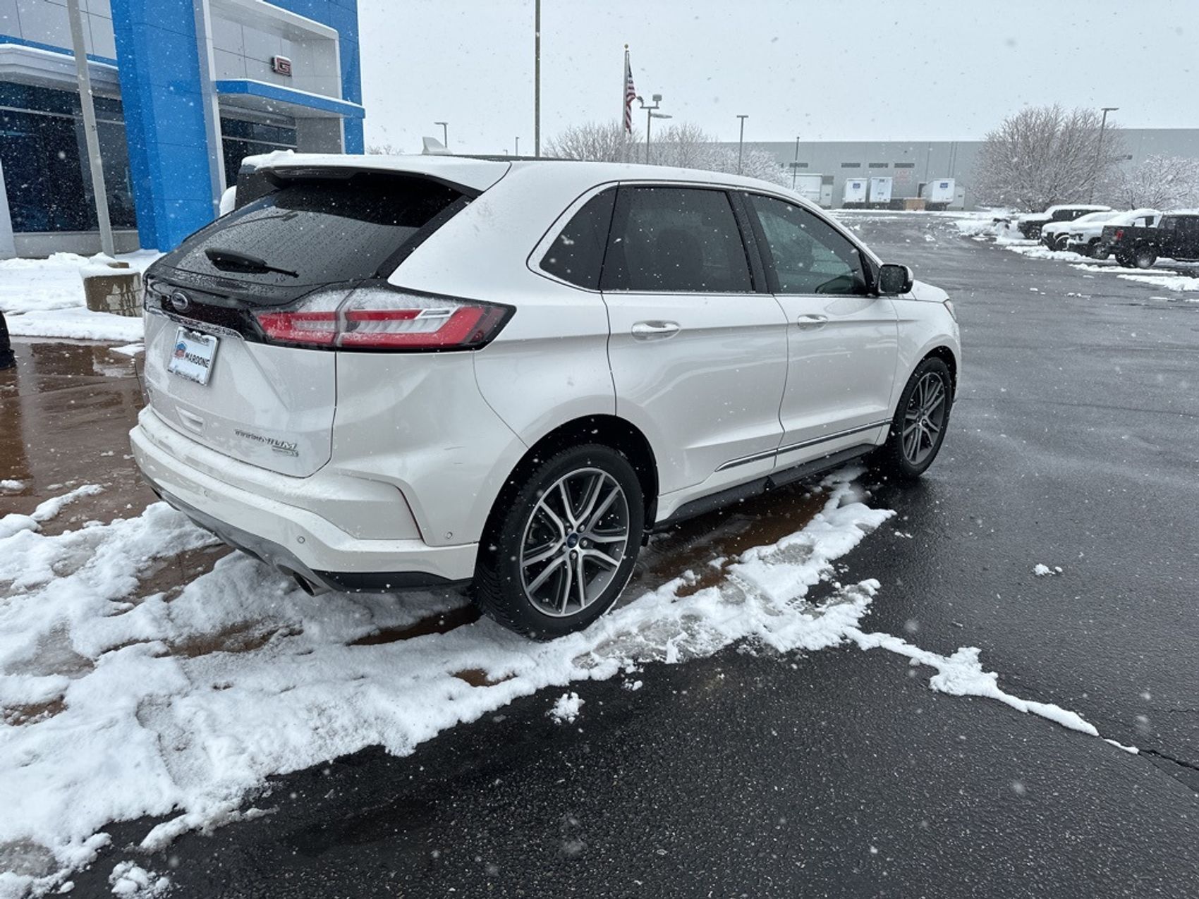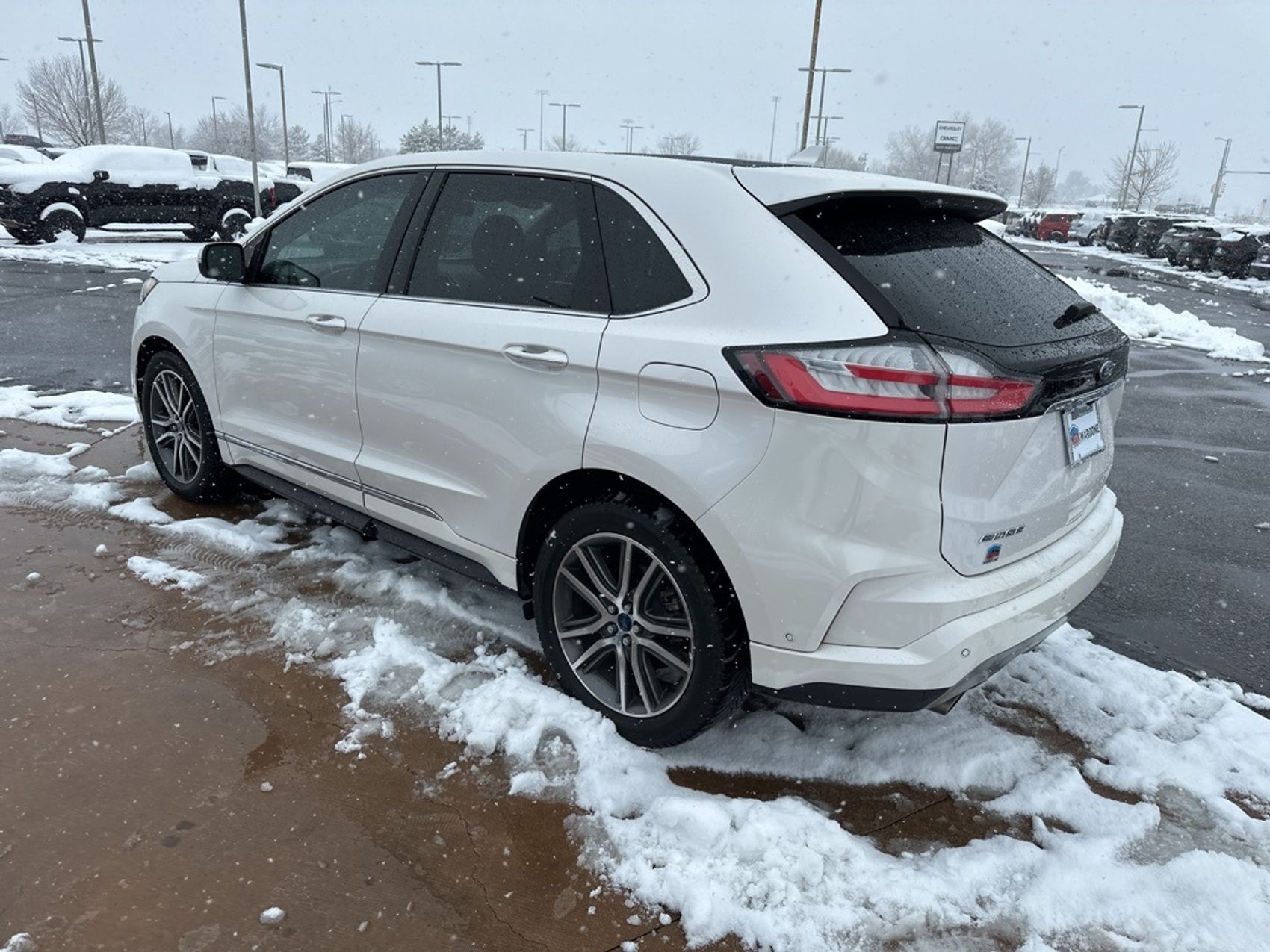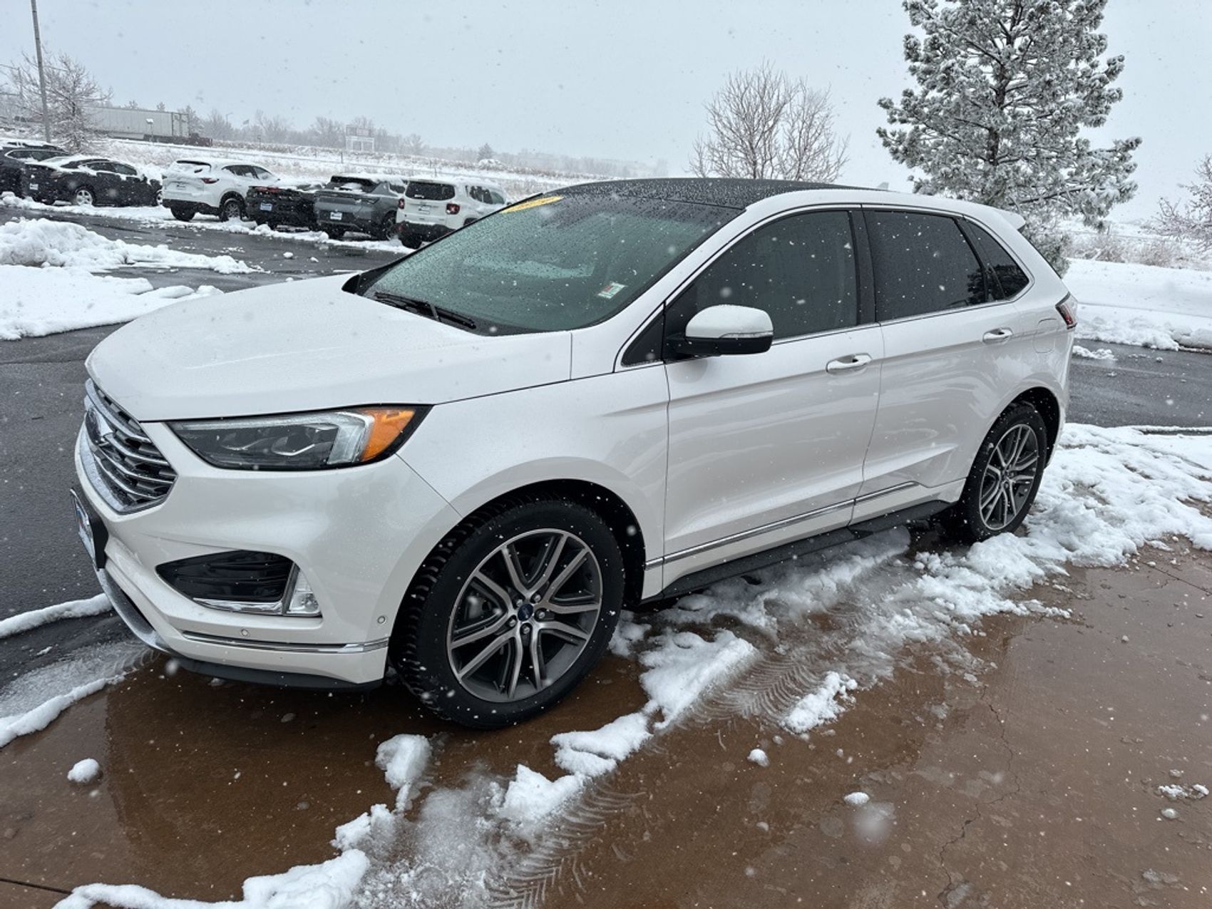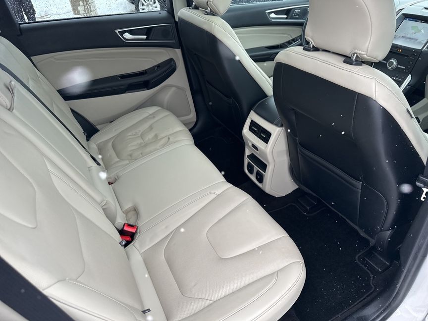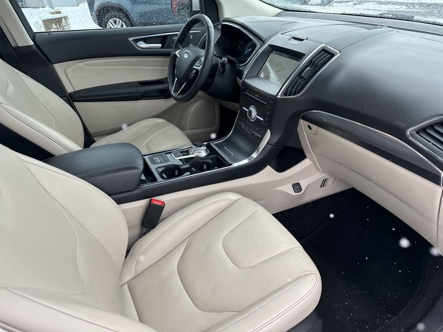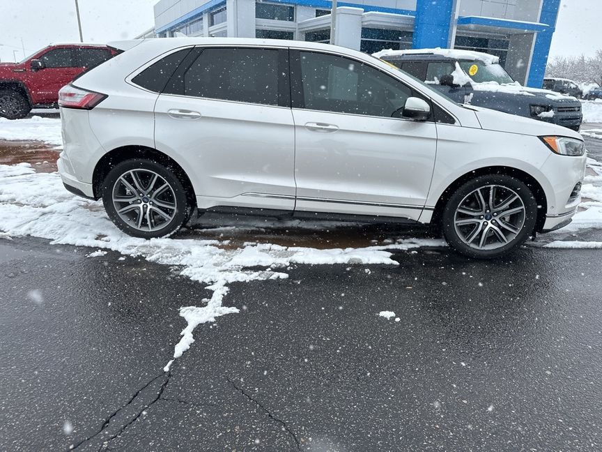 Clean CARFAX. White Platinum 2019 Ford Edge Titanium FWD 8-Speed Automatic EcoBoost 2.0L I4 GTDi DOHC Turbocharged VCT FREE DELIVERY ANYWHERE IN COLORADO, NAVIGATION, HEATED FRONT SEATS, HEATED STEERING WHEEL, POWER SEATS, PANORAMIC MOONROOF, PRICED TO SELL!!!.Proudly serving Longmont, Boulder, Denver, Loveland, Erie, Fort Collins, Thornton, Westminster, Lakewood, Broomfield, Golden, Brighton, and Greeley. 22/29 City/Highway MPG