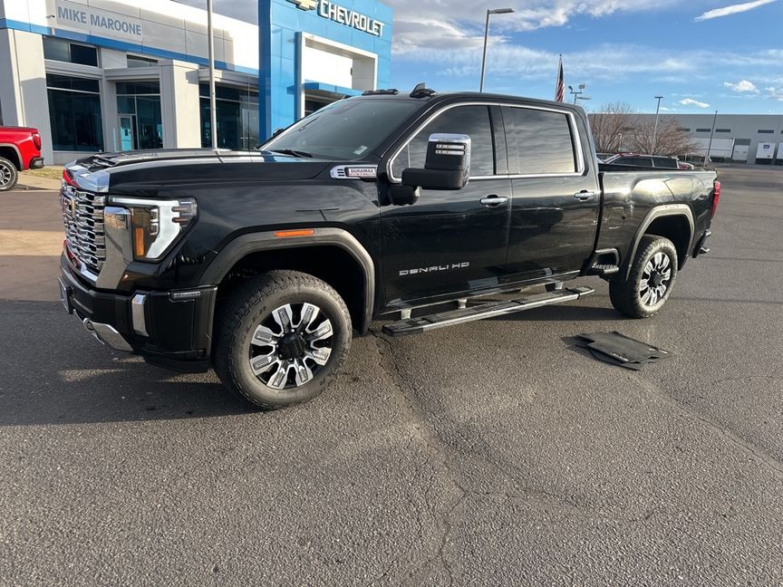Clean CARFAX. CARFAX One-Owner. Onyx Black 2024 GMC Sierra 2500HD Denali 4WD 10-Speed Automatic Duramax 6.6L V8 Turbodiesel 10-Speed Automatic, 4WD, Jet Black Leather.Proudly serving Longmont, Boulder, Denver, Loveland, Erie, Fort Collins, Thornton, Westminster, Lakewood, Broomfield, Golden, Brighton, and Greeley.