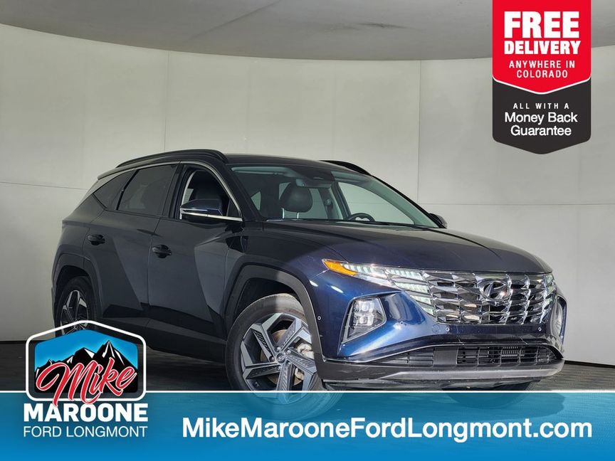 Recent Arrival! Clean CARFAX. FREE DELIVERY ANYWHERE IN COLORADO, All-Wheel Drive (AWD), Hybrid Powertrain, 1.6L Turbocharged GDI 4-Cylinder Hybrid Engine, 6-Speed Automatic Transmission, Drive Mode Select, Remote Smart Parking Assist, Surround View Monitor, Blind-Spot View Monitor, Forward Collision-Avoidance Assist with Junction Turning, Lane Keeping Assist, Lane Following Assist, Driver Attention Warning, Highway Driving Assist, Rear Cross-Traffic Collision-Avoidance Assist, Safe Exit Warning, Parking Distance Warning (Front & Rear), Electronic Stability Control, Traction Control, Anti-Lock Braking System, Tire Pressure Monitoring System, 5-Star Government Safety Rating, LED Headlights, LED Daytime Running Lights, LED Tail Lamps, 19″ Alloy Wheels, Hands-Free Smart Power Liftgate with Auto Open, Power Folding Heated Side Mirrors, Rain-Sensing Windshield Wipers, Smart Key with Push Button Start, Proximity Keyless Entry, Dual-Zone Automatic Climate Control, Heated and Ventilated Front Seats, Heated Rear Seats, Heated Leather-Wrapped Steering Wheel, Leather Seating Surfaces, Driver Seat Memory, Power Driver and Passenger Seats, Ambient Interior Lighting, Digital Instrument Cluster, Panoramic Curved Display, Bose Premium Audio System, Apple CarPlay & Android Auto, Bluetooth Hands-Free Calling, Wireless Device Charging, USB Ports, Navigation System, SiriusXM Radio Capability, Hyundai BlueLink Connected Services, Auto-Dimming Rearview Mirror, Carpeted Floor Mats, Wheel Locks, This 2023 Hyundai Tucson Hybrid Limited AWD blends advanced technology, luxury comfort, and outstanding fuel efficiency. Powered by a turbocharged hybrid drivetrain with all-wheel drive, it delivers confident performance while achieving excellent MPG. The Limited trim adds premium features like ventilated leather seats, panoramic digital displays, Bose audio, and cutting-edge driver assistance systems. A refined, efficient SUV ideal for drivers who want comfort, capability, and modern tech in one sleek package.. Deep Sea 2023 Hyundai Tucson Hybrid Limited 4D Sport Utility I4 6-Speed Automatic AWD37/36 City/Highway MPG